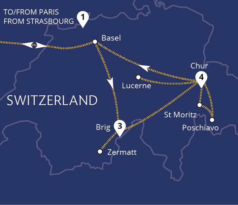 Staggering mountain peaks and serene alpine lakes provide the extraordinary setting for this holiday as we travel in First Class all the way, including on the iconic Bernina Express and Glacier Express. Staying in the Engadine Valley and the popular mountain resort of Zermatt provides idyllic bases from which to explore the Swiss Alps by rail...