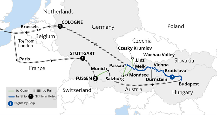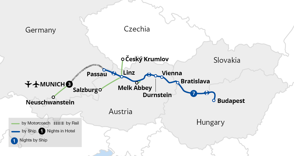• Fly to Munich and join our luxurious Classic Blue Danube river cruise